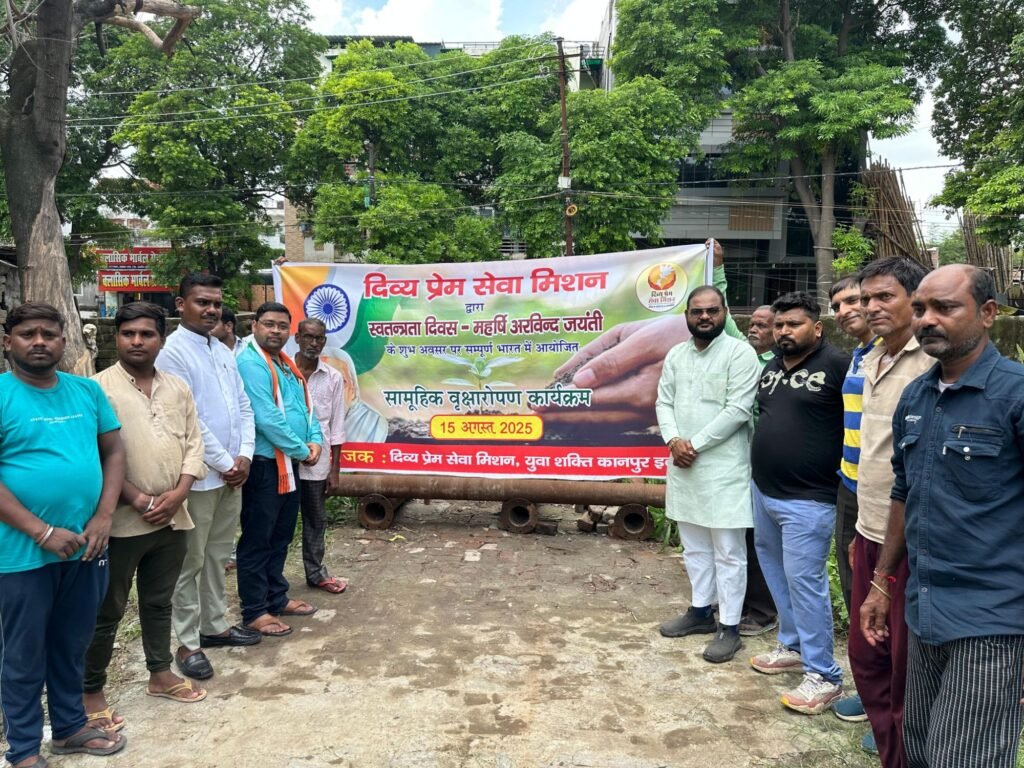 दिव्य प्रेम सेवा मिशन – युवा शक्ति, कानपुर इकाई के तत्वाधान में स्वतंत्रता दिवस एवं महर्षि अरविन्द जयंती पर m ब्लॉक काकादेव में सामूहिक वृक्षारोपण का आयोजन किया गया। इस अवसर पर महेन्द्र विक्रम सिंह (अंचल संयोजक), नीरज कुरील (पार्षद), अमन सोनकर एवं नितिन बाजपेई समेत कार्यकर्त्ताओं ने 11 वृक्ष लगाकर, महर्षि अरविन्द एवं स्वतंत्रता संग्राम सेनानियों कों श्रद्धांजलि दीं।